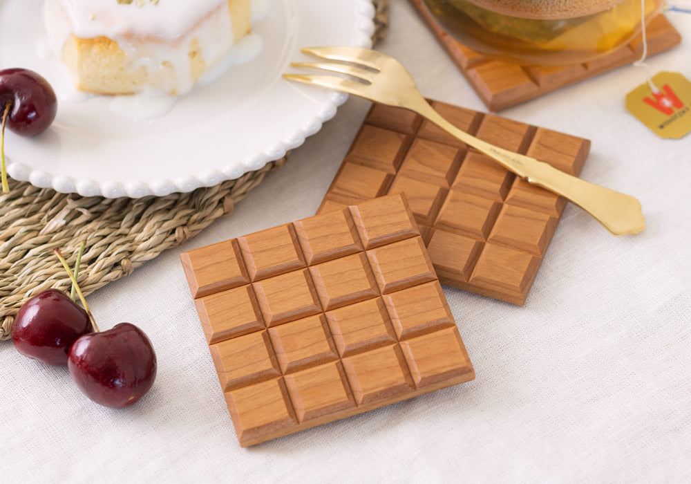 表面は格子状、裏面は横長のデザイン。どちらもチョコレートらしさは損なわず、リバーシブルで気分に合わせてお楽しみいただけます。