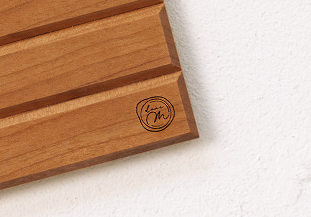 コースター本体はどの角度からでも美しく見えるよう、厚みと溝の角度を計算し、ひとつひとつ丁寧に研磨しています。素材の温かみを活かしながら、光と影の調和まで考え抜き、洗練された印象に仕上げました。